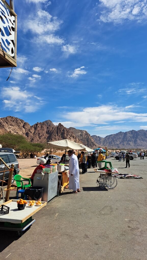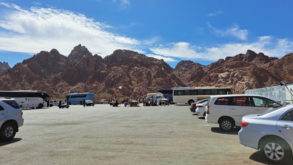 In that circle, there are various delicious street food stalls, prayer places, camel rides, and climbing up and down the mountains. There are many tall, rugged mountains around the Wadi Al Baida place. During winter, it will feel very cold in that place even in the harsh sun; so it is wise to wear some warm clothes or take them with you before visiting there. This place is mostly visited by pilgrims. When going from Medina to Wadi Al Baida, you will almost always find mountain bikes on both sides of the road; mountain bikes can be ridden for a certain fee. Occasionally, you can see a herd of camels.